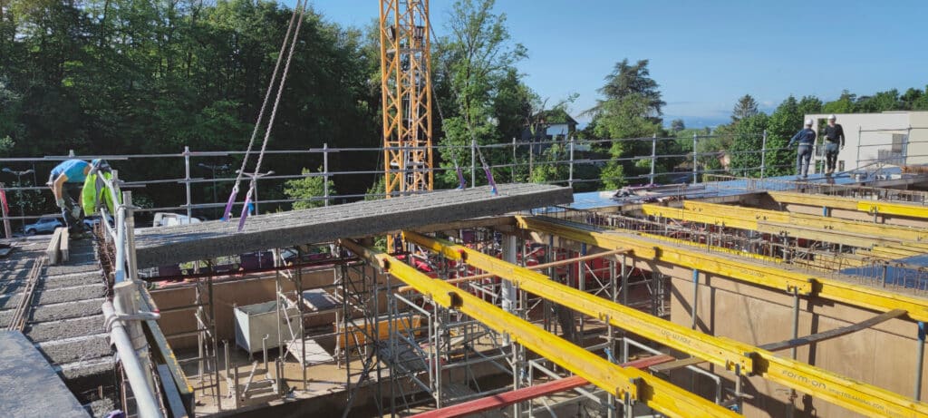 De technique courante, elle est basée sur les règles de calculs de l’EC 2.1.1. Le béton de bois est un élément de coffrage sans apport dans la raideur ou l’inertie du plancher.