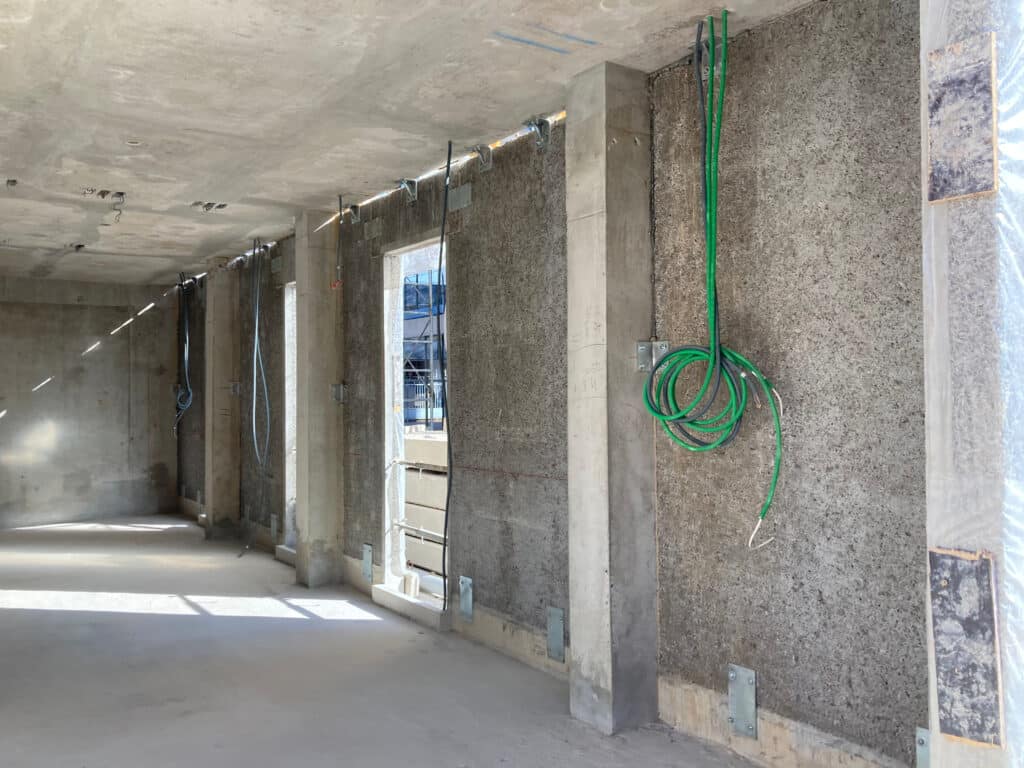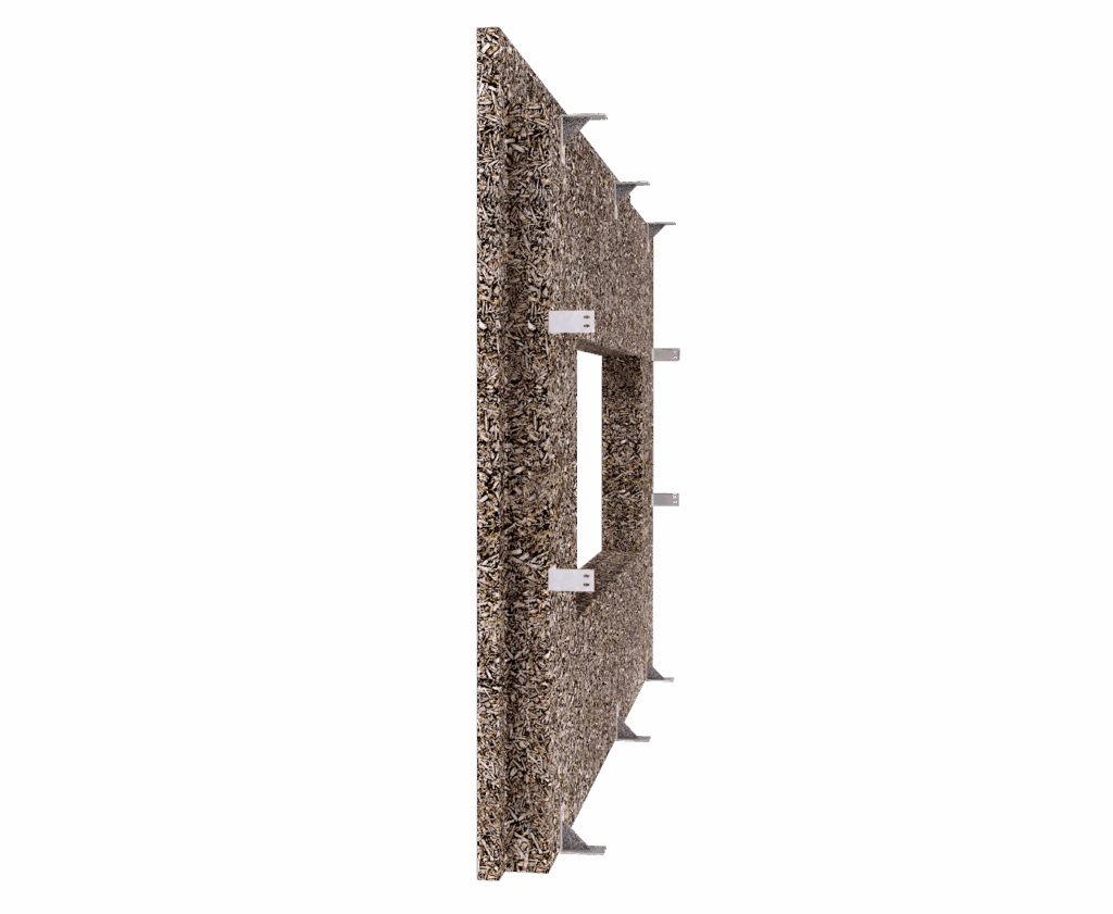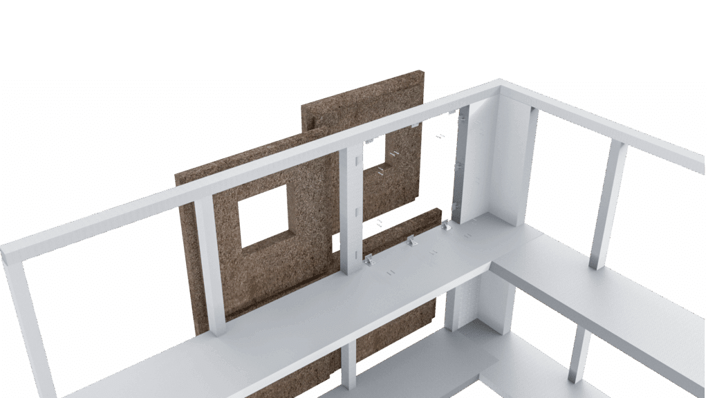 Le panneau de façade FP2 de Spurgin est préfabriqué sur mesure et fixé mécaniquement sur une structure porteuse en béton armé. Il offre des performances thermiques et environnementales élevées et permet la réalisation de façades autoportantes. Sa composition inclut 38,5 kg/m² de matière biosourcée.