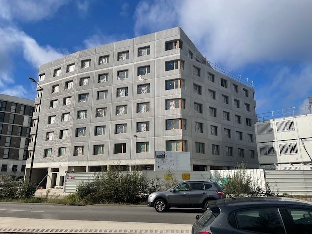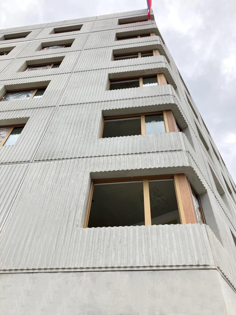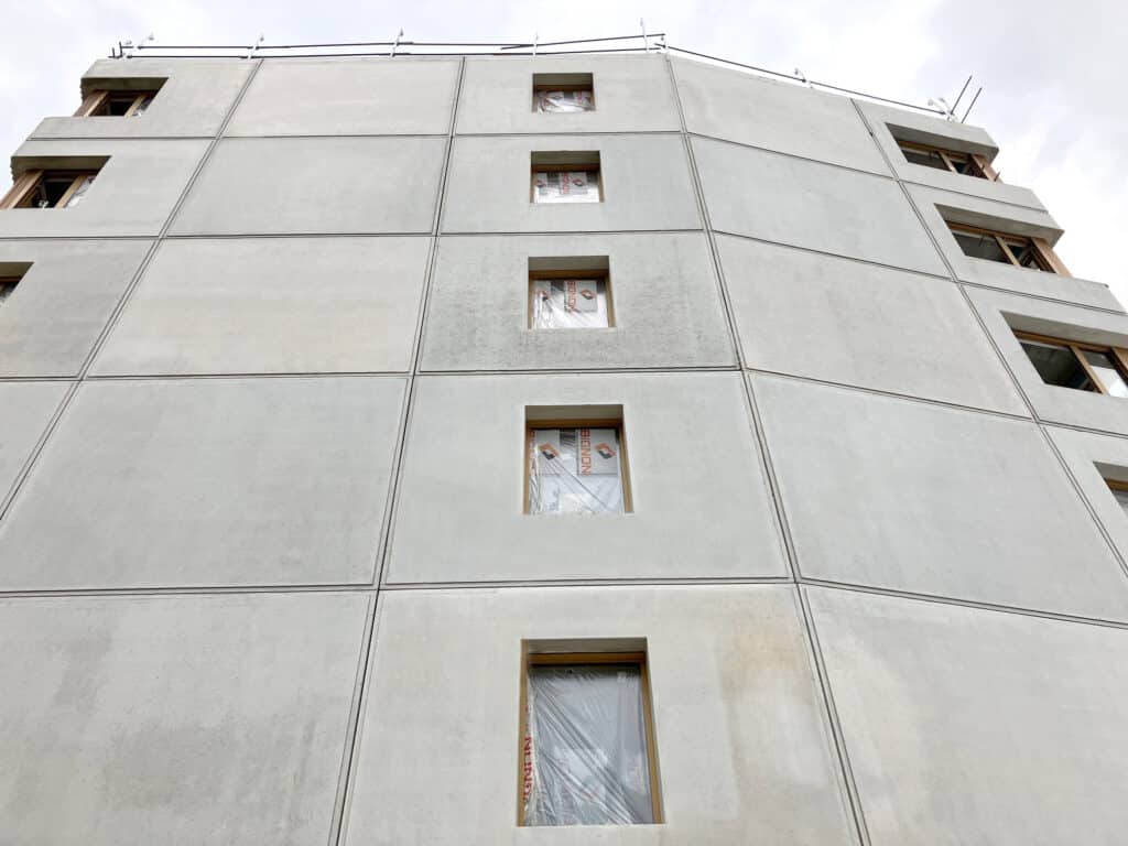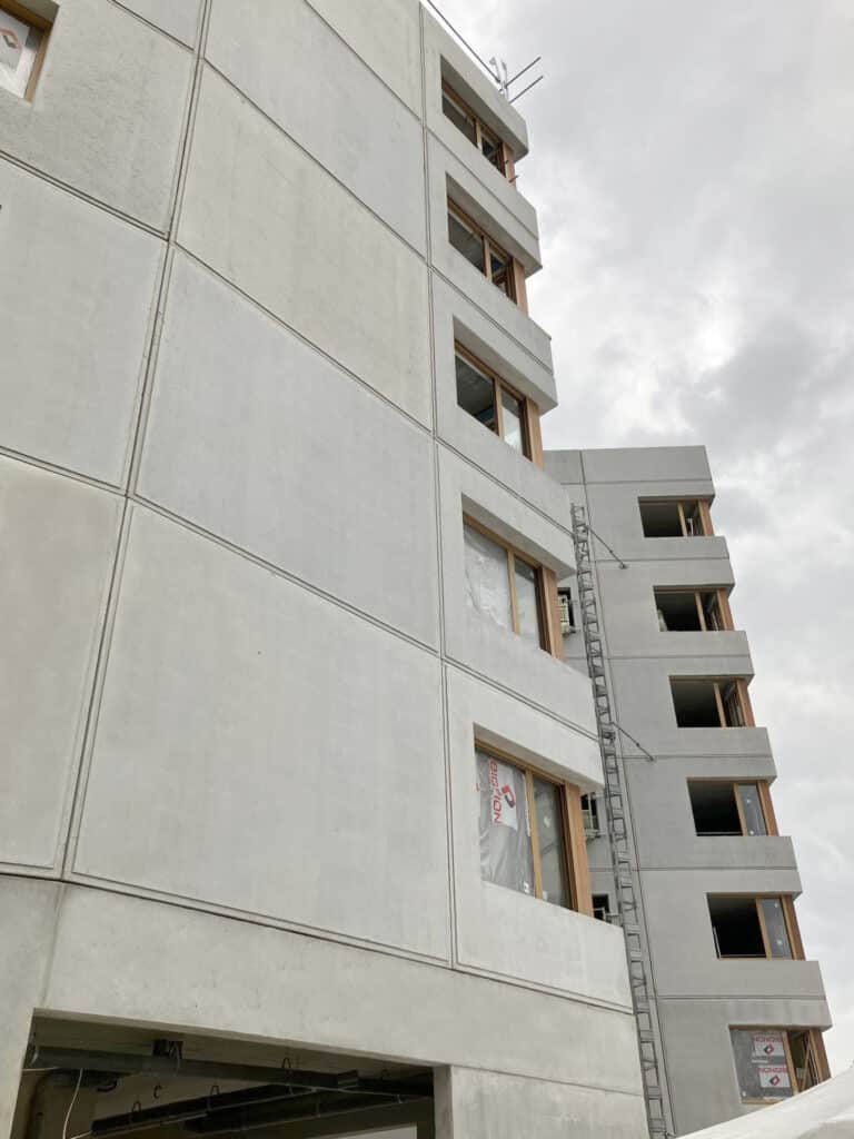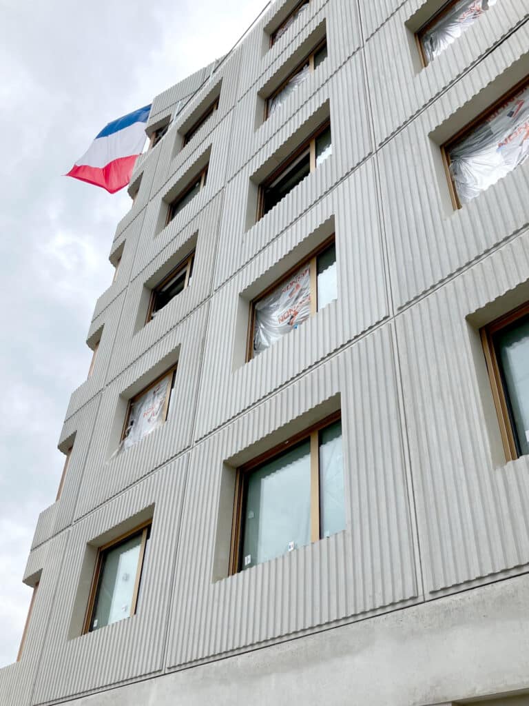 Spurgin réalise la totalité des murs de façade de cette résidence étudiante avec 2600 m² de façades et pour moitié en murs matricés à Saint Germain en Laye.
